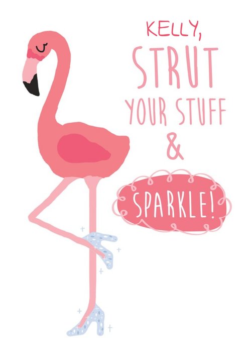 Personalised birthday card for her. Strut your stuff and sparkle. Flamingo birthday card
