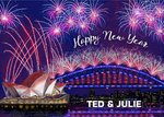 Text reads: "Happy New Year. Ted & Julie". Editable names.