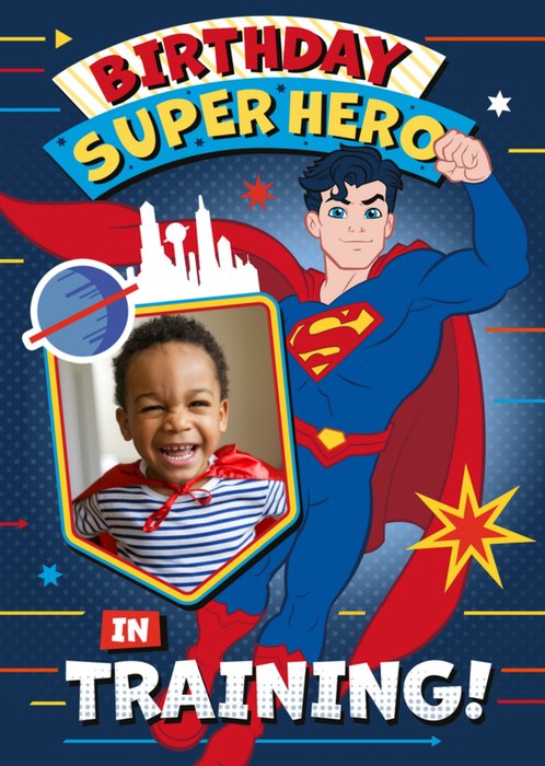 Featuring an illustration of Superman and one photo upload frame on a cosmic background.