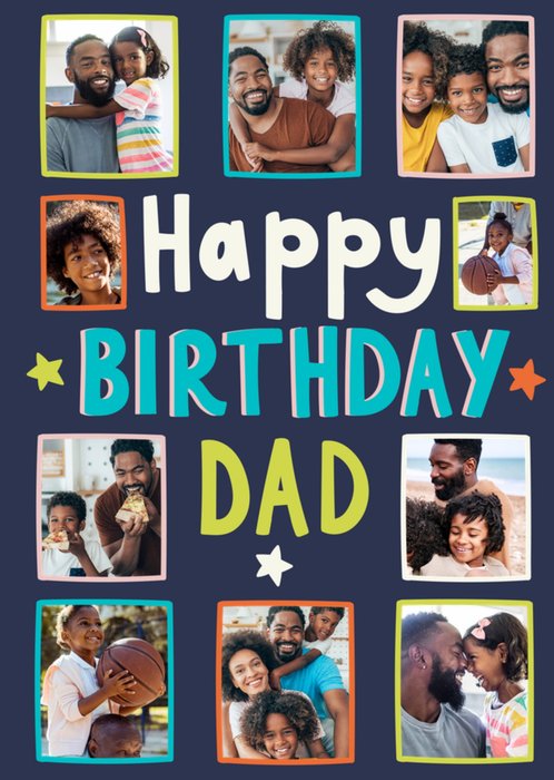 Sweet And Bold Colourful Happy Birthday Dad Collage Photo Upload Birthday Card