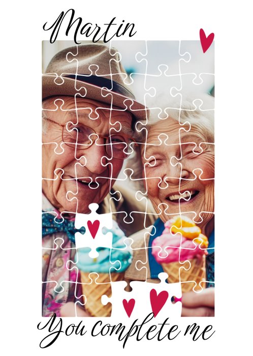 Sweet Loving You Complete Me Puzzle Photo Upload Valentine's Day Card