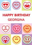 "Happy Birthday Georgina". Name can be personalised.