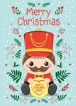 Features a central plush toy of a cute Nutcracker character, holding a love heart that reads "have a cracking xmas."
