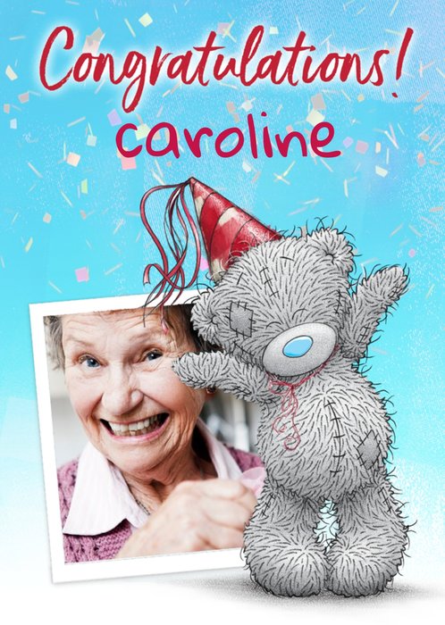 Tatty Teddy Wearing A Party Hat Photo Upload Congratulations Card