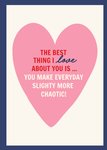 “The best thing I love about you is … you make everyday slightly more chaotic!”