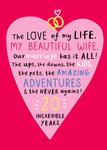 “The love of my life, my beautiful wife. Our marriage has it all! The ups, the downs, the kids, the pets, the amazing adventures & the never agains! 20 incredible years.” '20' can be personalised!