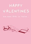 Featuring a minimalist illustration of lingerie and a card with little hearts, on a pink background.