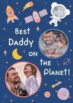 Featuring a cute illustration of Tiny Tatty Teddy in a spacesuit floating around in space, surrounded by 2 photo upload frames and text, as well as planets, stars and rockets.