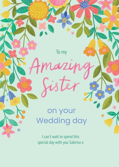 To My Amazing Sister On Your Wedding day - Modern Floral Wedding Day Card