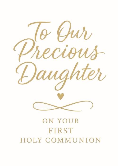 A classic, elegant design featuring gold script lettering with a small heart and decorative swirl divider on a white background.