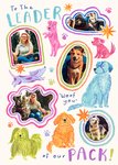 A fun and heart-warming card for the true leader of the pack! Featuring playful, hand-drawn illustrations of various dogs, paw prints, and vibrant colours, this card includes five photo upload frames to personalise with images of the recipient and their furry companions. A perfect choice for any dog lover, pet parent, or someone who deserves to be celebrated as the pack leader.