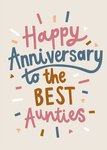 Text on the front of card reads "Happy Anniversary to the best Aunties"
