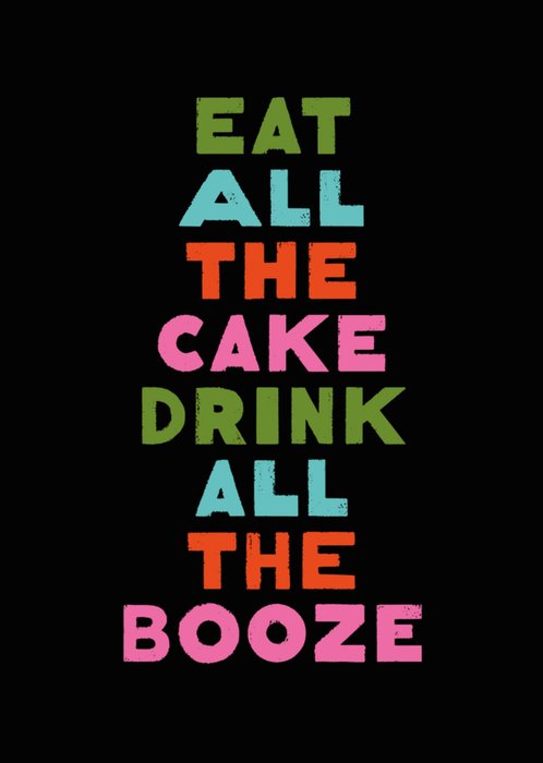 Typographic Eat All The Cake Drink All The Booze Birthday Card