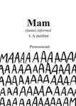Front of card: Typographic card with MAAAAAAAMMMM handwritten text along bottom and text with definition at the top of card Text reads:"Mam (noun) informal. 1. A mother. Prounouced Maaaaaaaaaaam" With editable text.