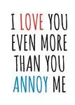 Typographical Funny I Love You Even More Than You Annoy Me Card
