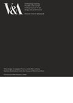 Features a vintage fashion illustration from the V&A archive, showing a stylishly dressed woman in a red dress.