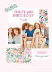 Front of card: V&A Fashion and Textiles Collection Mum 50th Birthday Card Features two photo uploads and pink, floral collage style design. Text reads: "Happy 50th Birthday Mum. Have A Great Day" Happy 50th and Mum are customisable.