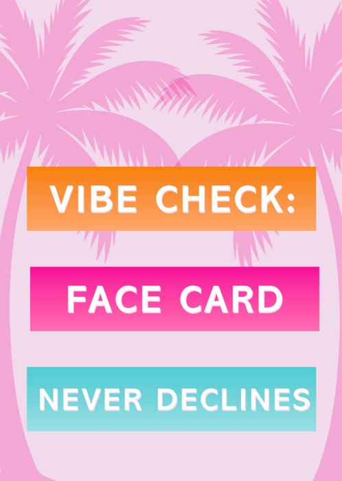 A soft-pink backdrop with silhouetted palm trees and three stacked gradient bars—sunset orange, hot-pink and aqua—framing bold white lettering.