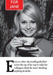 Front of card: Featuring a vintage black and white photo of a lady enjoying a cup of tea. Text reads: "For Jane every so often, she would gently blow across the top of her cup to make her colleagues think she wasn’t drinking anything alcoholic.” 'For Jane' can be personalised!