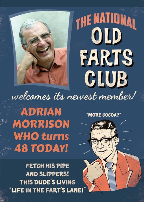 Vintage The National Old Farts Club Personalised Photo Upload Happy Birthday Card