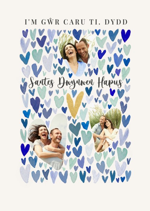 Warm-hearted Dydd Santes Dwynwen Hapus Watercolour Love Hearts Photo Upload St Dwynwen's Day Card