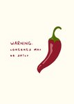 Featuring a red chilli pepper illustration with flirty warning text on a cream background.