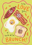 A delightful Mother’s Day card featuring a cute breakfast spread with smiling bacon, eggs, toast, and sausage, each customisable with personal photos. The card playfully reads “We love you a whole brunch!”