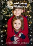Front of card: Featuring a full photo frame decorated with snow flakes. Text reads: "We wish you a merry Christmas love from Willow & Ethan x". 'From Willow & Ethan x' can be personalised!