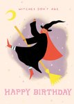 Witches Don't Age Illustrated Witch Flying On Broom Birthday Card