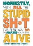 with all the shit I've seen you do, I'm amazed you're still alive friend birthday postcard