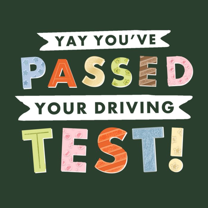 Bold and playful multi-coloured lettering, with white banners on a dark green background.