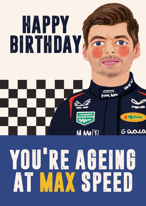 You're Ageing At Speed Illustrated Racing Driver Birthday Card