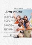 A modern birthday card featuring a large photo upload area for your image, and a verse of text. The card has a white background with a textured paper effect.