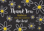Featuring cheerful illustrations of smiling daisies set against a charming chalkboard background.
