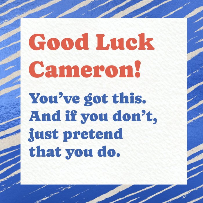 "Good luck Cameron! You've got this. And if you don't, just pretend that you do."