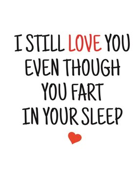 Typographical I Still Love You Even Though You Fart In Your Sleep Valentines Day Card