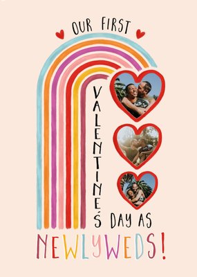 A Colourful Rainbow With Three Heart Shaped Photo Frames Newlyweds Photo Upload Valentine's Day Card
