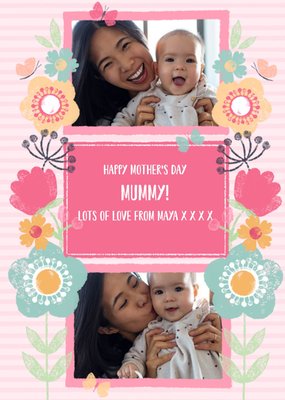 Pink Stripes And Bright Flowers Mummy Personalised Mother's Day Card
