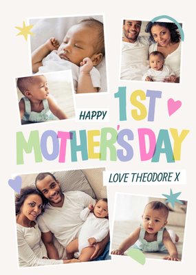 Collage Of Five Photo Frames With Colourful Typography 1st Mother's Day Photo Upload Card