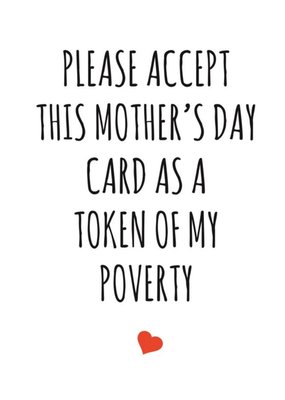 Typographical Please Accept This Mothers Day Card As a Token Of My Poverty Card