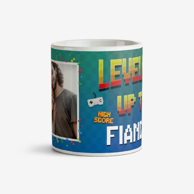 Bright Retro Gaming Design Levelled Up To Fiancé! Engagement Mug