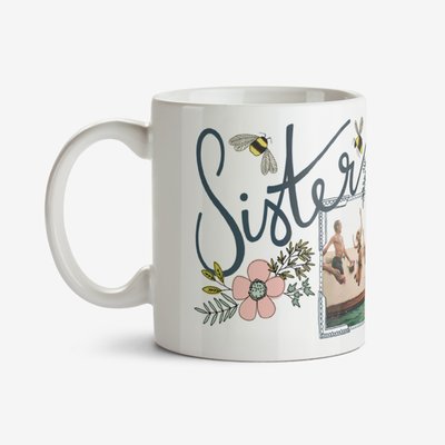 Flowers And Bees Photo Upload Birthday Sister Mug