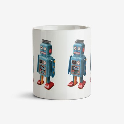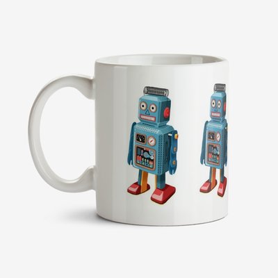 Folio Illustrations Of Four Vintage Blue Toy Robots In A Row Mug image 4