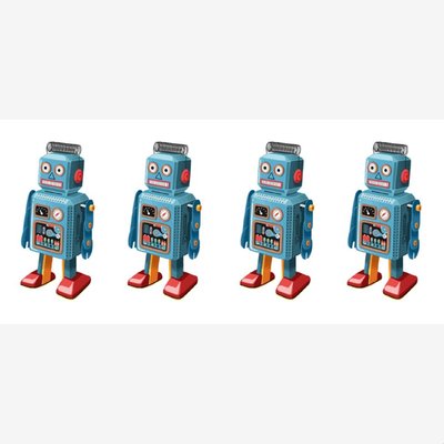 Folio Illustrations Of Four Vintage Blue Toy Robots In A Row Mug image 1