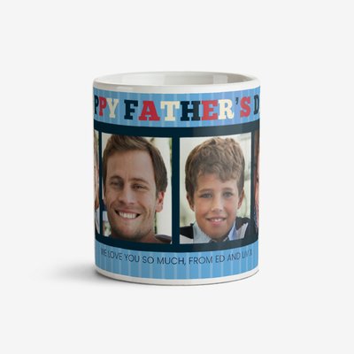 Father's Day Grid Blue Photo Upload Mug