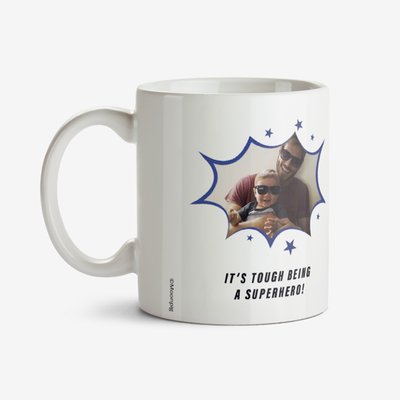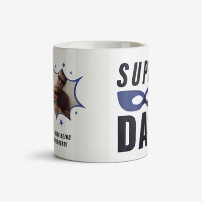 Typographic Super Dad Blue Mask Personalised Photo Upload Mug