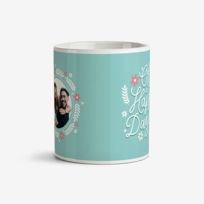Typographic Floral Oh Happy Days Photo Upload Mug
