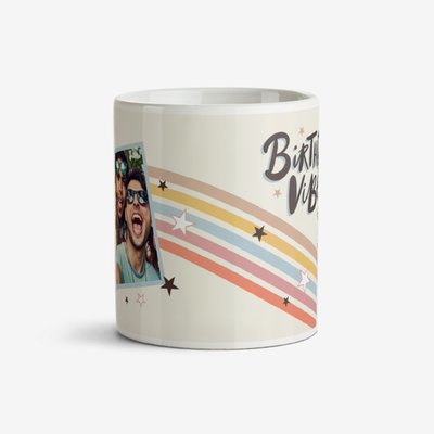 Birthday Vibes Retro Photo Upload Mug