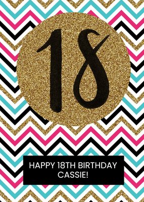 Multicoloured Zig Zag Personalised Happy 18th Birthday Card