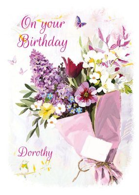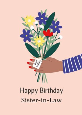 Illustrated Cute Flower Bouquet Happy Birthday Card